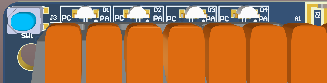 <figure><img src="https://content.gitbook.com/content/tpXGY8yRGIrUmuuiav4P/blobs/IC8jUGaKHPW3ZnqCkdP0/image.png" alt=""><figcaption><p>RoverHatGen2 LEDs (D1-D4) and pushbutton (SW1). The silk screen denotes the phase of each motor channel with <em>PA</em> and <em>PC</em></p></figcaption></figure>